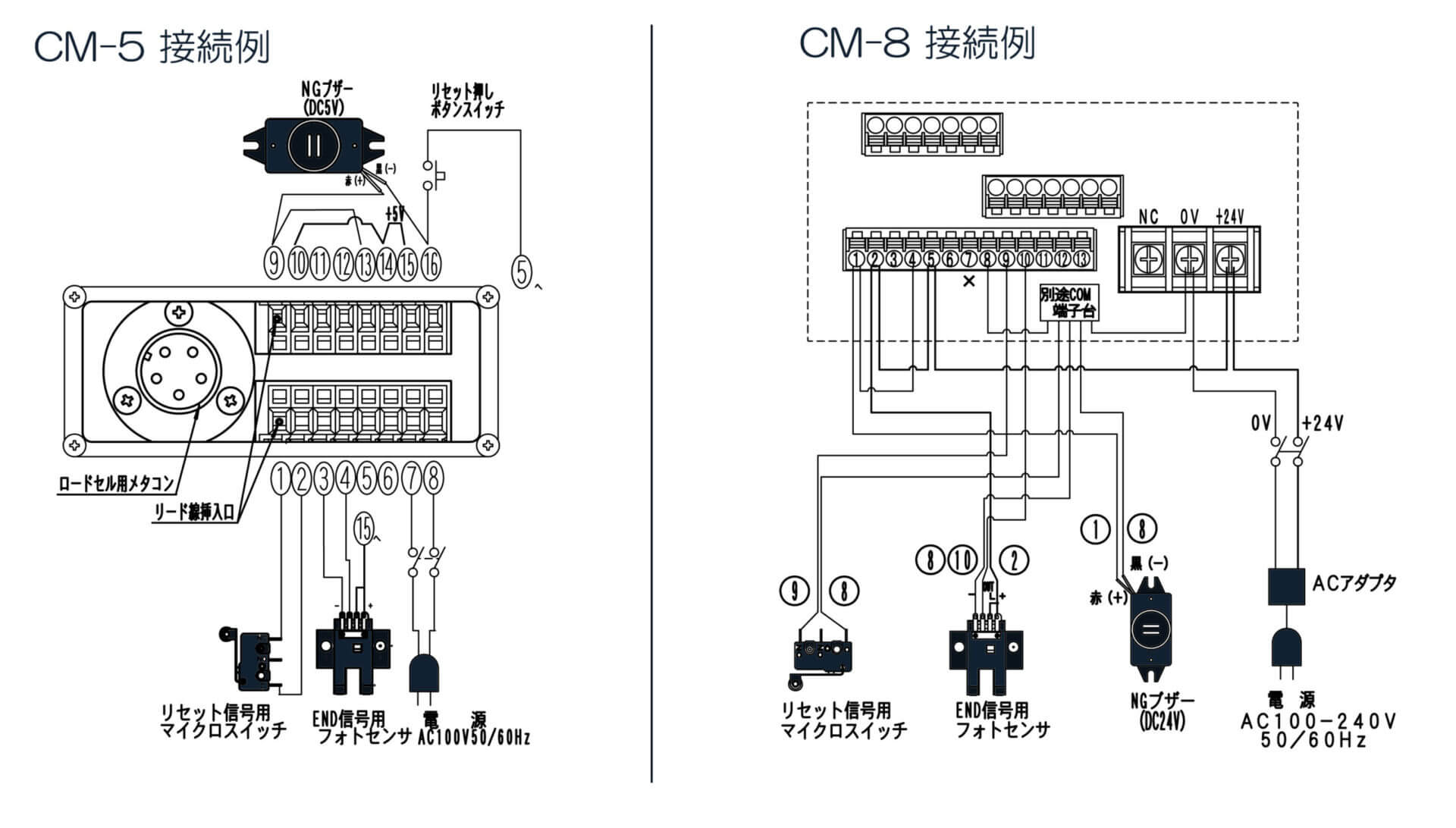 CM-5型とCM-8型との相違点や入出力信号端子配列、接続例等を下記の通りご案内いたします。